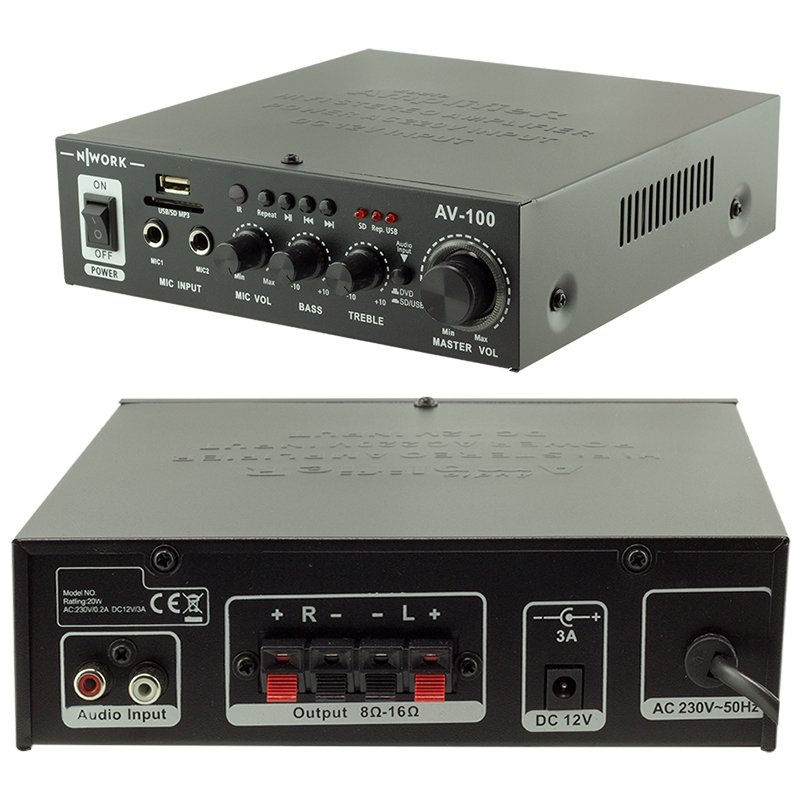 NWORK AV-100 USB/SD 2 x 20W 4-8 OHM AMPLİFİKATÖR